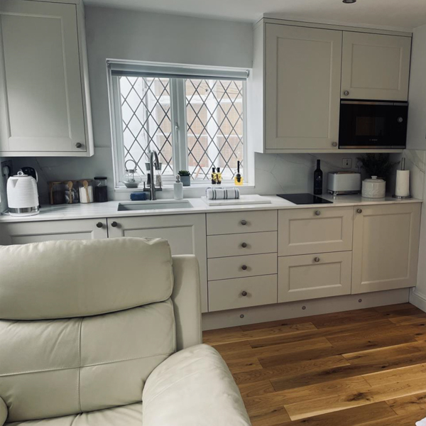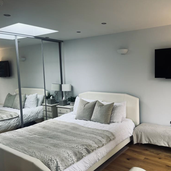 The private accommodation includes a well-equipped kitchen with an induction hob, microwave, fridge freezer, toaster, and coffee machine, ideal for light cooking during your stay. Underfloor heating runs throughout, and you’ll have your own dedicated WiFi connection along with a smart TV offering Apple TV and Netflix.
